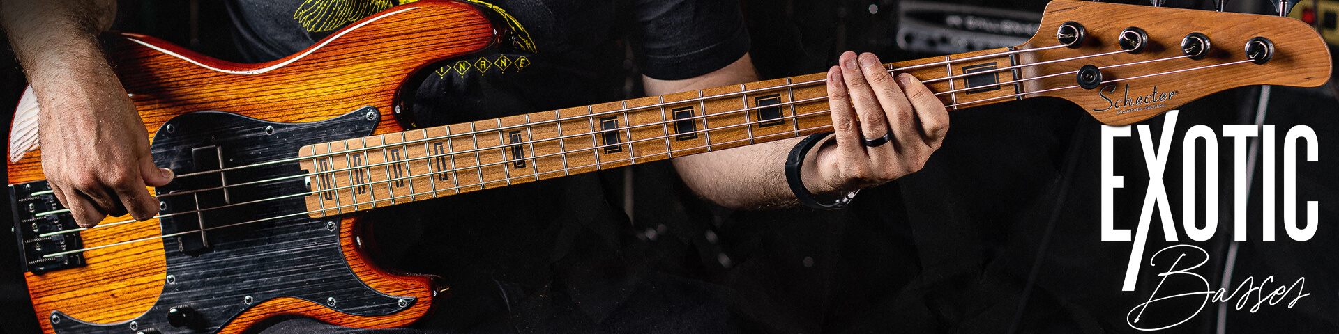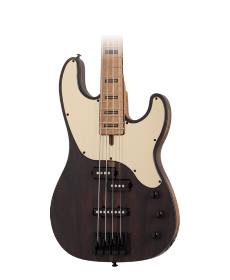 Die Model-T Exotic Bässe sind eine Fusion von atemberaubendem Design und erstklassiger Performance. Mit einem Korpus aus Black Limba oder Black Limba und Ziricote Decke verbinden sie einen kraftvollen Klang mit einem ästhetisch ansprechenden Look. Der geschraubte Roasted Maple Hals mit „Thin-C” Halsprofil und das Ebenholzgriffbrett bieten eine komfortable Spieloberfläche.