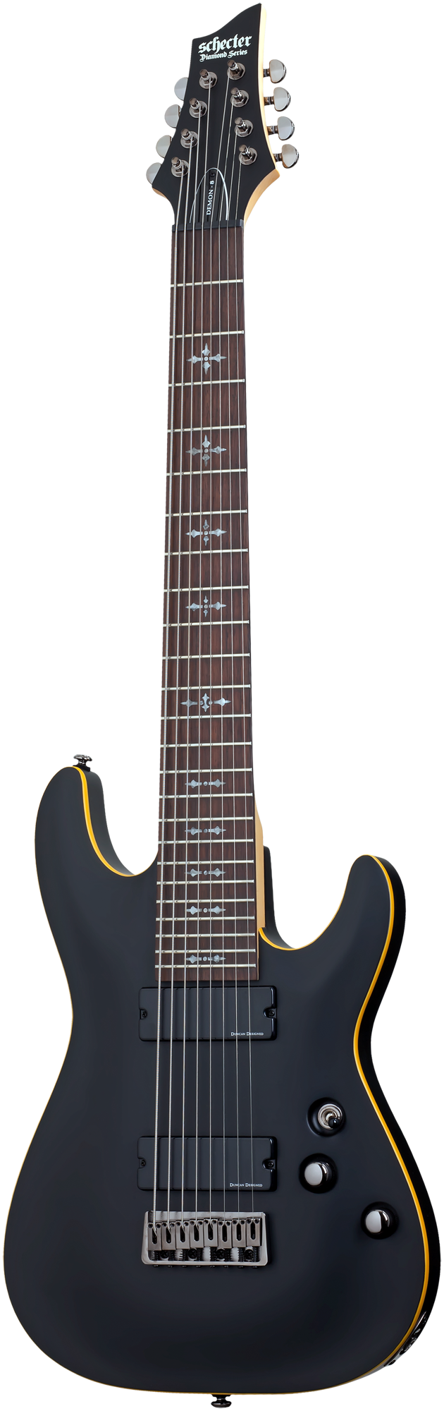 | Saiten | Ernie Ball 8-String Skinny Top Heavy Bottom #2624 (.009/.012/.016/.026/.036/.046/.064/.080) |