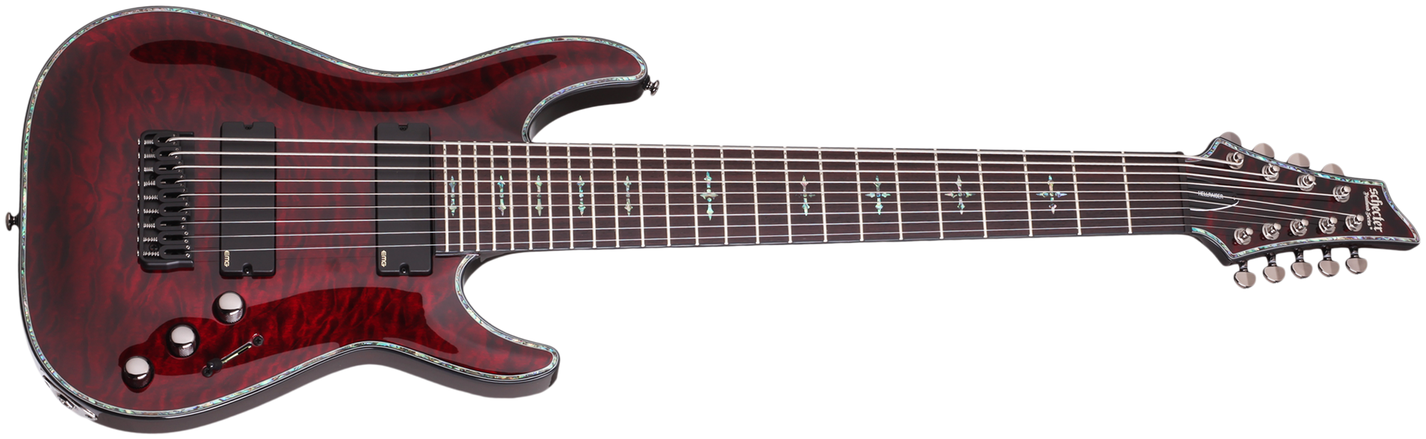 | Saiten | Ernie Ball 9-String 28" Scale #2628 (.009/.012/.016/.024/.034/.046/.064/.080/.105) |